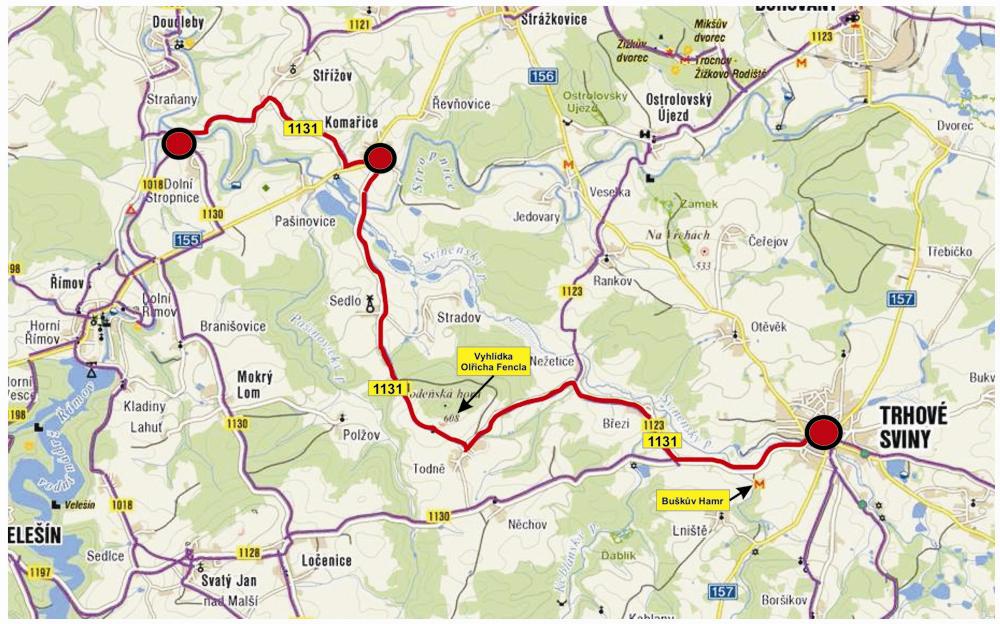 Vyznačenou cyklotrasu č.1131 si můžete prohlédnout zde.