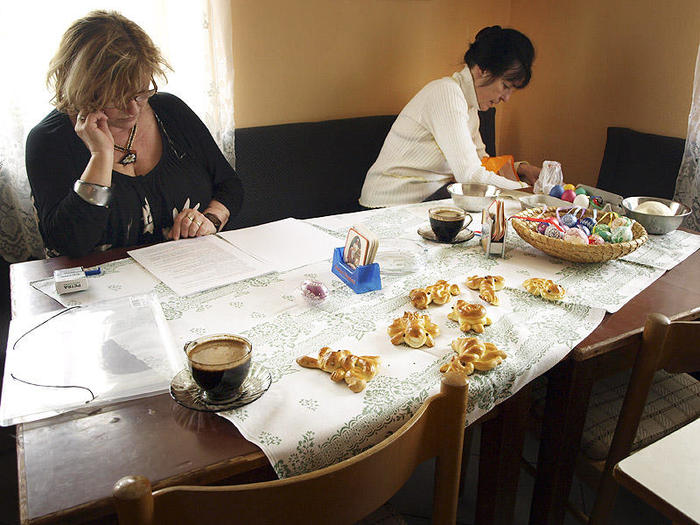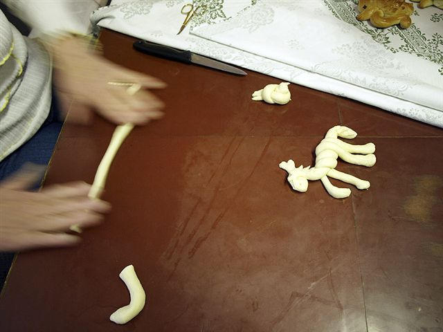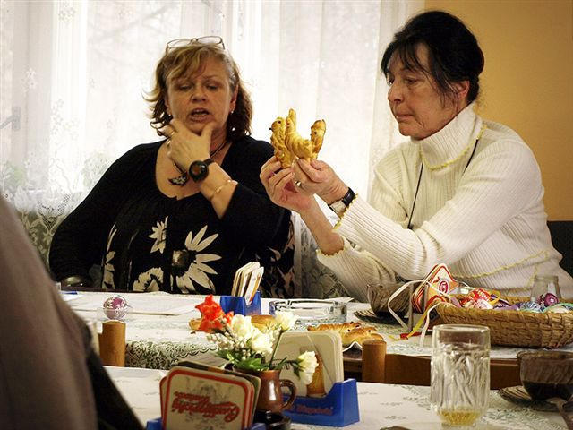 Během besedy jsme se od paní Mackové dozvěděli mnoho zajímavých podrobností o velikonočních svátcích, zvycích, pověrách, symbolikách ale i historických datech, která se k Velikonocům vážou. Paní Wolková během celého programu pilně tvořila nové kraslice, na nichž názorně předváděla různé způsoby zdobení a na závěr také předvedla něco z svého umění s těstem, kdy během chvilky dokázala mistrně "uplést" různé velikonoční symboly ze speciálního těsta.